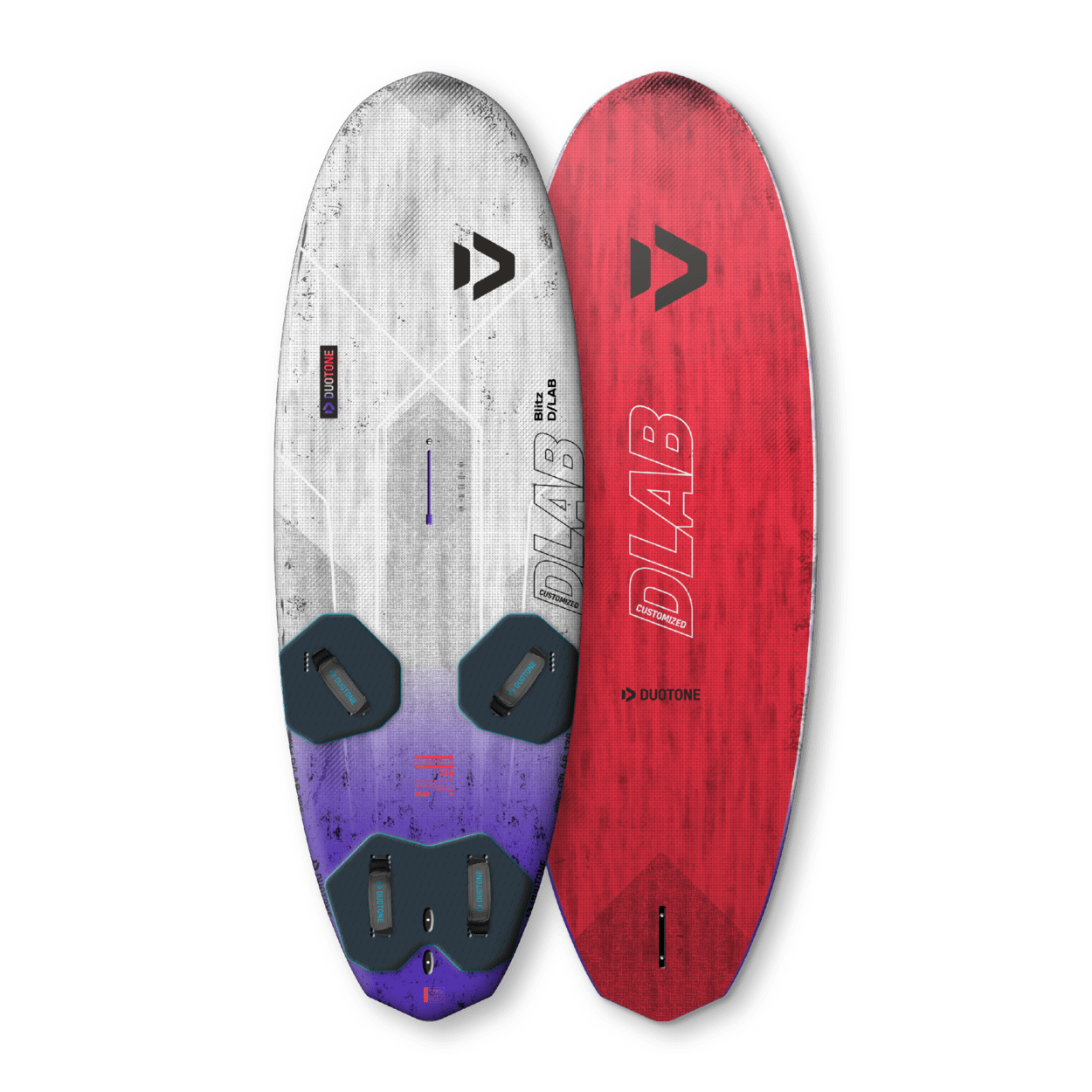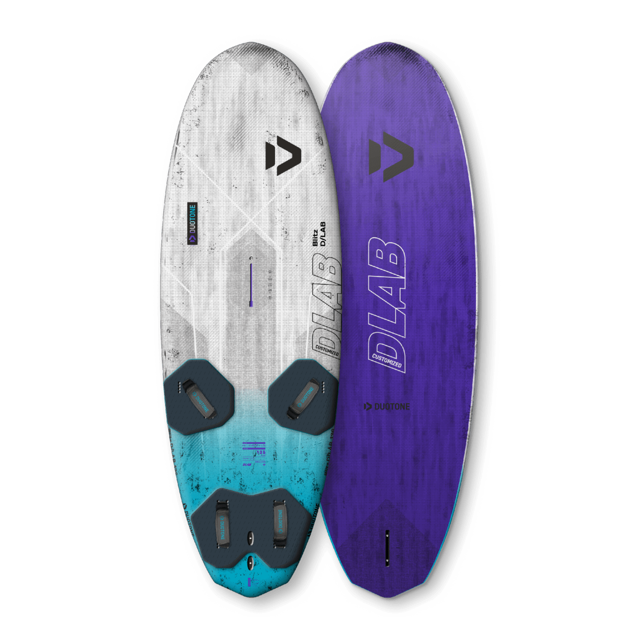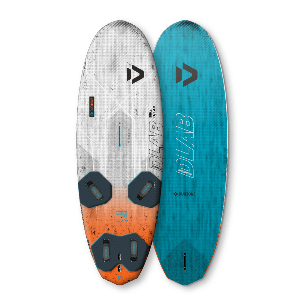 With the EAGLE and the brand-new BLITZ we offer 2 boards for the freeride >< freerace segment covering everything from learning to plain up to being the fastest sailor at your spot. Now imagine to combine this with the same high-end FULL CUSTOM D/LAB construction being used for the FALCON_FIN and there you have it: the EAGLE and BLITZ D/LAB CUSTOMIZED are the stiffest, lightest and earliest planing boards in class class. In fact they are over a kilo lighter than other comparable boards.EAGLE or BLITZ - which one is the right freeride>< Where it will take you1) EAGLE: IT’S ALL ABOUT PLANINGWhere you come from: you had your first Windsurfing experience and are capable of staying upwind. There is no other board which will help you to experience the gliding/planing sensation in such a short time than the EAGLE. Where it will take you: besides getting planing, jibing is the second strength of the EAGLE. But it’s not just made for learning to (power)jibe but will even accompany you up to freerace blasting and laydown jibing 2) BLITZ: MAXIMUM PERFORMANCE WITH MINIMUM EFFORTWhere you come from: you are comfortable of sailing in the foot straps then the BLITZ is your performance machine. Where it will take you: the BLITZ will instantly make you a faster sailor. Since it’s also very easy to jibe it will be your partner from your first power jibes up to pro level laydown race jibes. Partnered with a high performance fin and a freerace sail you might even become the fastest guy at your spot with the BLITZ, whilst still maintaining the comfort of a freeride board.When designing the BLITZ, the key concept was to make a board with maximum performance, yet minimal effort that maintains control over the widest possible wind range. But how could we achieve a board that works in such a wide range of conditions, with such a broad range of user levels?Firstly, the BLITZ follows the same VOLUME YET CONTROL CONCEPT like the EAGLE. This means you can easily choose a 10 liter bigger board compared to other brands without losing any control in overpowered conditions. By gaining some more liters, the board feels more stable underfoot in non-planing conditions, and also gets planing sooner than boards with less liters without compromising the high-end performance and control. Additionally the BLITZ can be gybed aggressively in experienced hands but also feels easy and smooth for intermediate riders due to the wide tail. This allows you a steady progression through all levels of the jibing process, without ever “out-growing” the board. And finally, we have incorporated several features from our World Cup Slalom boards:The racier/boxier rails and a further outboard strap position allow the rider to push harder to let the board fly over the fin for increased top speed.The 2 STEP CUTOUTS further reduce the drag when going full speed to give you the edge over your friends.The RECESSED MAST TRACK AERA lowers the rig connection, boosting control and aerodynamics by “closing the gap”.Maximum control and predictable behavior over a maximum wind-range also make the BLITZ the ideal companion for long distance blasts in total control.The insane broad range of use can be extended even further by exchanging the fin which has a noticeable effect on the characteristics of the board:The F_RIDE fin that comes with the board makes the BLITZ very comfortable to ride and more forgiving to jibe.As an aftermarket fin the BLITZ can be partnered with our RACE D/LAB fin developed by Dani Aeberli and tested by Jordy Vonk. With this fin the BLITZ becomes a freerace machine that is hard to beat. With this wide range of features, the BLITZ provides endless hours of performance freeride >< freerace fun and will accompany you on your windsurfing journey to become a faster sailor.YOUR NEW BLITZ D/LAB CUSTOMIZED DREAM MACHINES ARE READY AND WAITING FOR YOU TO GO BEYOND IMAGINATION!