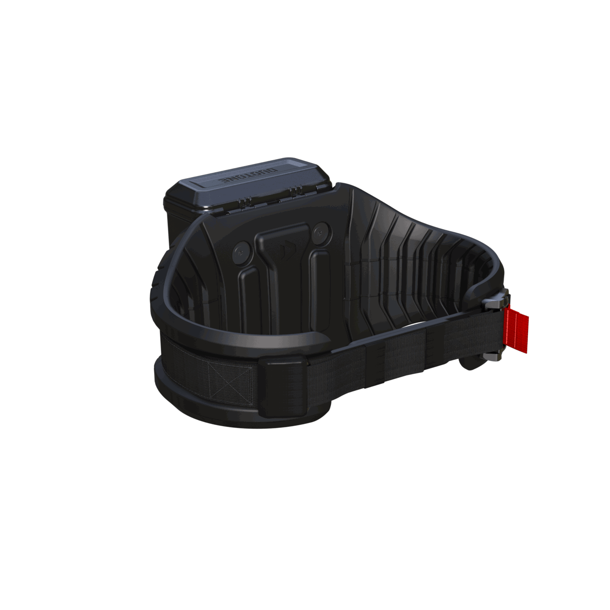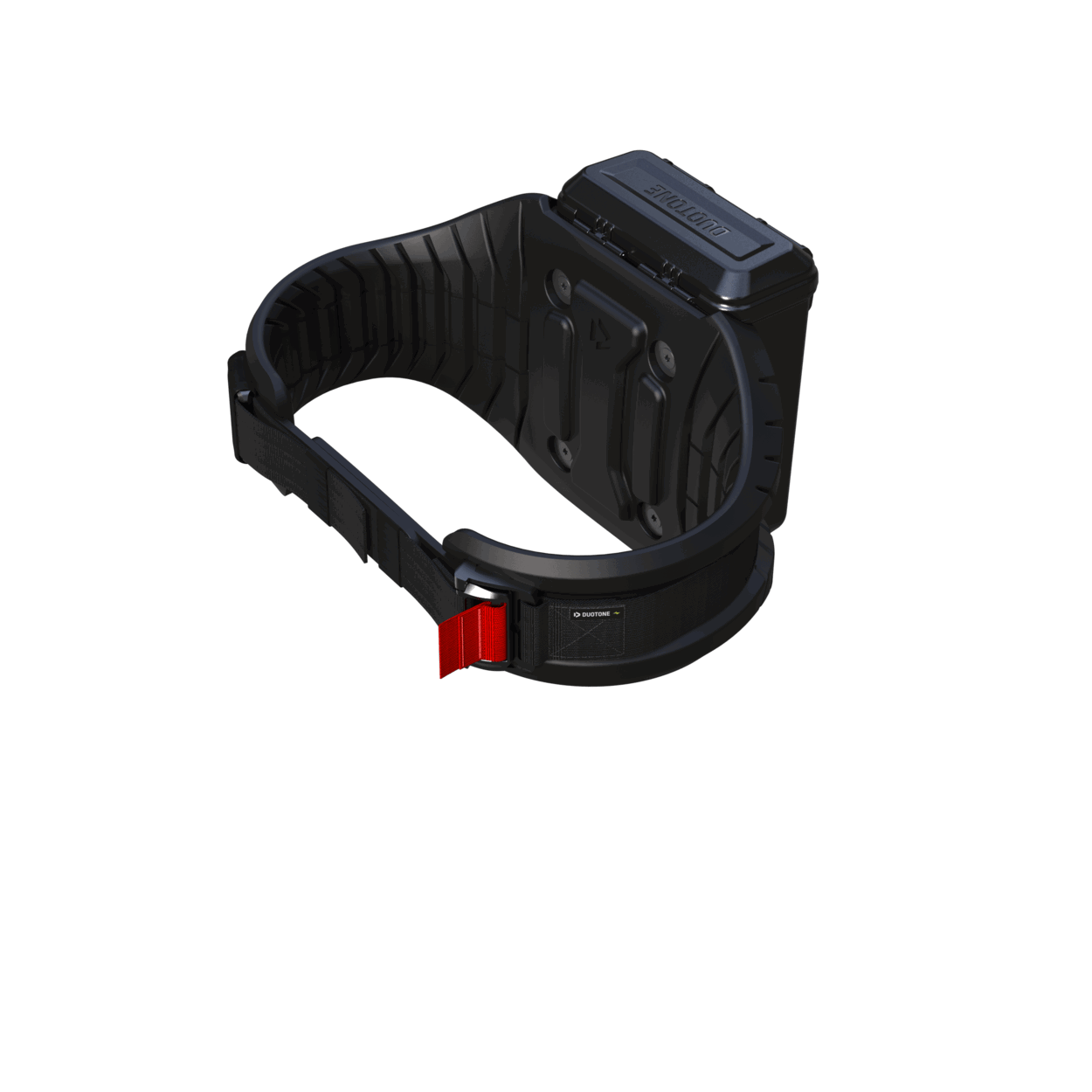 Unlike conventional systems that mount the batteries on the mast top plate or the board, the Duotone Foil Assist batteries (2 x 1 kg) are placed in a waterproof box attached to a comfortable waist harness. This arrangement ensures that the board-foil setup remains perfectly balanced despite the motor, preserving the pure feel of foiling as much as possible. A backpack with batteries has the disadvantage of placing weight on the shoulders, which can disrupt balance during turns and quick movements. With the harness, the weight sits on the hips, where it does not affect your balance, and you have full freedom of movement in your upper body. You will hardly notice the weight of the harness (approximately 3.76 kg, including the box and batteries) after just a few minutes.The connection between the batteries and the motor is made via a cable that runs along a shorter leash from the battery box to the top plate of the mast. The board leash is attached below the cable port of the battery box to the harness. The receiver for the remote control is mounted in the lid of the battery box, ensuring a more reliable connection between the remote and the motor, as the Bluetooth signal is not disrupted by water.The eHarness has been designed with a clear focus on safety and user-friendliness. The magnetic buckle and the Velcro neoprene strap allow for quick and easy removal. With the adjustable buckle, you can customize the harness to fit your individual waist size. If you need to detach the harness underwater, you can easily do so with a quick tug. Additionally, the harness is made from non-water-absorbing materials and features built-in buoyancy, allowing it to float independently and not pull you down in the water. To prevent the battery box from opening under water pressure, it is protected with a neoprene cover that can be opened using a large zipper.