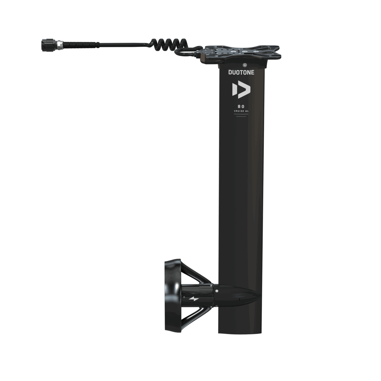The Cruise Mast AL, made from aluminum, is 80 cm long and therefore slightly shorter than the eMast AL. It is particularly well-suited for beginners and intermediate foilers who want to improve their foiling skills or experience their first glides on rolling swell. The eMast AL Cruise is extremely stiff and provides a direct, responsive feel.The powerful motor is mounted low on the mast, 15 cm above the fuselage, and equipped with a two-blade folding propeller. Due to the exposed propeller, we recommend that especially beginners install the optional propeller guard. Its hydrodynamic design helps keep drag—and therefore increased energy consumption—as low as possible. However, even with the guard, caution around the propeller is still necessary.All components of the Foil Assist system are compatible with the other mast options, allowing you to easily expand your setup. With a wide selection of fuselage adapters — including, in addition to Duotone, ten other options such as F-One, Armstrong, Gong, Axis, Lift, North, Code, Sab, AFS, and KT — the Foil Assist can be seamlessly combined with most foil systems. It mounts to the board just like a traditional mast.The following items are included in the eMast AL Cruise Set:Foil Assist Cruise Mast AL including motor, bell, regular propeller blades, regular cable, and leashPropeller guardCruise eMast coverMotor bell & propeller coverScrew set and toolsCable fastener VSpare regular propeller bladesBattery bag