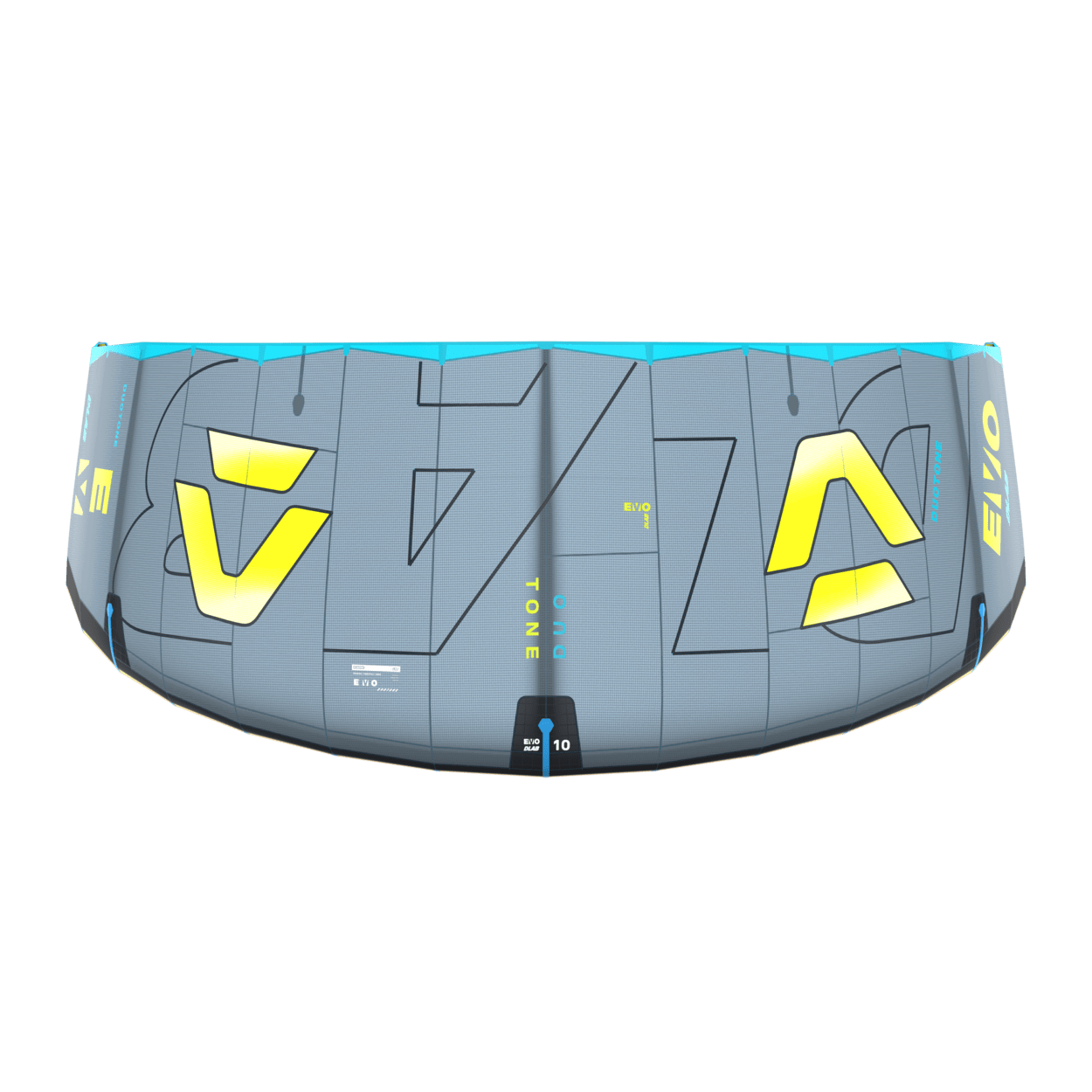 Introducing the Duotone Evo D/LAB, the ultimate high-performance allrounder kite for ambitious riders and that has proven itself as the King of the Air together with Andrea Principi and winner of numerous big air competitions. Built with Aluula Gold and Trinity TX, the Evo D/LAB delivers unrivaled low-end power, incredible top-end control, and stability, making it the kite of choice for serious riders aiming to elevate their performance. This kite is designed for those who demand the best. Experience effortless, floaty hangtime that allows you to extend your aerial maneuvers and an unmatched vertical boost that surpasses everything else in the Duotone range. The Evo D/LAB empowers you to push your limits and explore the true potential of your riding. Key to its exceptional performance is the improved upwind efficiency and depower capabilities. The narrower leading edge reduces air resistance, allowing the kite to fly further forward in the wind window, enabling better upwind performance and more effective depower. This advancement ensures that you can ride confidently in a wide range of conditions without compromising performance. For precise control and an improved riding feel, the Evo D/LAB features a new 6-point bridle system that ensures smooth and direct power transmission. The longer bridle enhances control even at full depower, expanding the kite’s wind range for even more versatility. An additional segment in the tips contributes to a more agile response and playful freeride feeling, providing faster turning capabilities and more direct steering. The lighter, more precise bar feedback enhances control and playfulness, ensuring you receive instant position feedback from the kite, which translates to reliable, smooth power delivery and intuitive handling. In strong winds, the combination of the narrower leading edge and the advanced 6-point bridle system offers increased stability and reliability, enabling you to maintain control throughout your ride. Optimized jumping and looping performance are hallmarks of the Evo D/LAB. With optimized seam construction, combined with the narrower leading edge and improved tip geometry, this kite allows for explosive jumps and precise loops, giving you the confidence to execute the most ambitious maneuvers. Experience the pinnacle of kiteboarding performance with the Duotone Evo D/LAB - the kite that sets you apart and propels you to new WOO heights. Unleash your potential and redefine your riding with the Evo D/LAB, where performance meets cutting-edge technology!