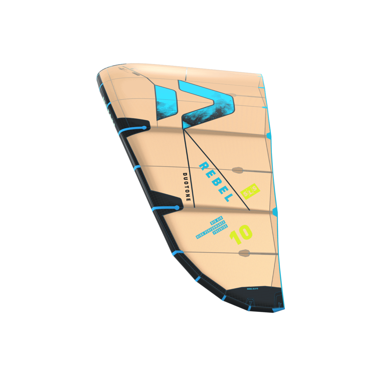 The legendary Duotone Rebel SLS, the ultimate high-performance kite designed for freeride and big air enthusiasts. Built with advanced Penta TX and Trinity TX materials, the Rebel SLS offers maximum hangtime and controlled power, setting the stage for powerful and stylish tricks on the water. The Rebel SLS is engineered for those who crave huge hangtimes. With its remarkable ability to facilitate powerful jumps, this kite allows riders to perform their best tricks with confidence. Its “sheet and go” design makes for easy takeoffs, empowering you to launch into the sky with minimal effort. Experience powerful loops executed with full control, enabling you to navigate the air like never before. One of the standout features of the Rebel SLS is its direct bar feedback, which enhances precision and confidence during both ascent and descent. This is complemented by explosive lift capabilities, giving riders vertical takeoffs and extended airtime that elevate the performance standard in the big air segment. Key improvements have been made to enhance vertical lift without compromising hangtime. By shortening the chord length, the Rebel SLS presents a sleeker, more aerodynamic profile that facilitates efficient upward propulsion during jumps. The removal of pulleys from the front bridle simplifies the kite's setup, leading to a more responsive feel on the bar. This adjustment not only improves direct feedback from the bar but also enhances the rider’s ability to maintain precision control during dynamic maneuvers. With a decreased leading edge sweep angle, the kite can now climb faster to the edge of the wind window, particularly during kite loops. This optimization of airflow over the kite enables rapid ascents, making it easier for riders to execute quicker loops with explosive vertical boosts. The overall structural adjustments made to the Rebel SLS significantly enhance vertical acceleration, allowing for more dynamic jumps and aerial maneuvers. Additionally, modifications to the bridle system enhance agility and intuitiveness in high-performance riding scenarios, ensuring that every steering input translates seamlessly into kite response. This results in a more intuitive flying experience, allowing riders to tackle complex tricks with increased confidence. The Duotone Rebel SLS is your ticket to the skies. With its combination of powerful lift, responsive handling, and advanced technology, this kite is designed for riders who demand the very best in performance and style. Elevate your kiteboarding experience and reach your full potential with the Rebel SLS 2026.The Rebel SLS Concept Blue is the more sustainable version of the RebelSLS. The Rebel SLS Concept Blue showcase a strong commitment to sustainability in kitesurfing, offering the exact same performance. Made with undyed fabric, they reduce water and energy use during production while minimizing harmful chemicals, ensuring high quality and performance. All plastic components are crafted from recycled materials, promoting a circular economy and reducing plastic waste. Additionally, the kites feature biobased bladders made from renewable resources, further enhancing their eco-friendliness and reducing reliance on fossil fuels.